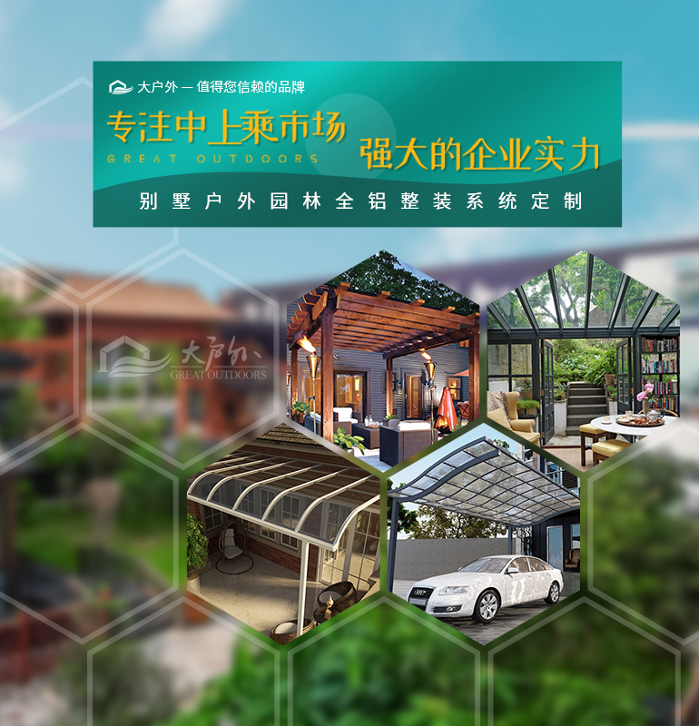 大戶(hù)外立足于”中國(guó)鋁都“佛山南海,專(zhuān)注別墅遮陽(yáng)(雨)產(chǎn)品開(kāi)發(fā),是南海地區(qū)鋁合金遮陽(yáng)行業(yè)的知名品牌。