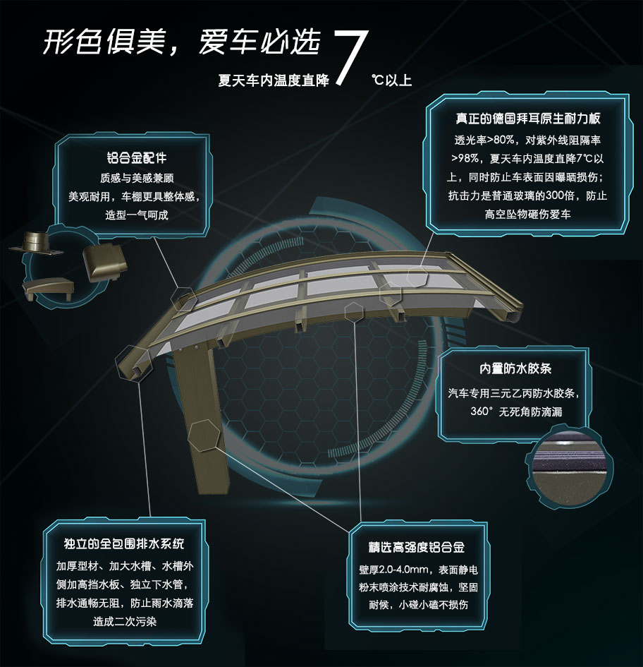 鍍鋅鋁合金結(jié)構(gòu),防止紫外線進(jìn)口耐力板,不變形不變色,歷久彌新