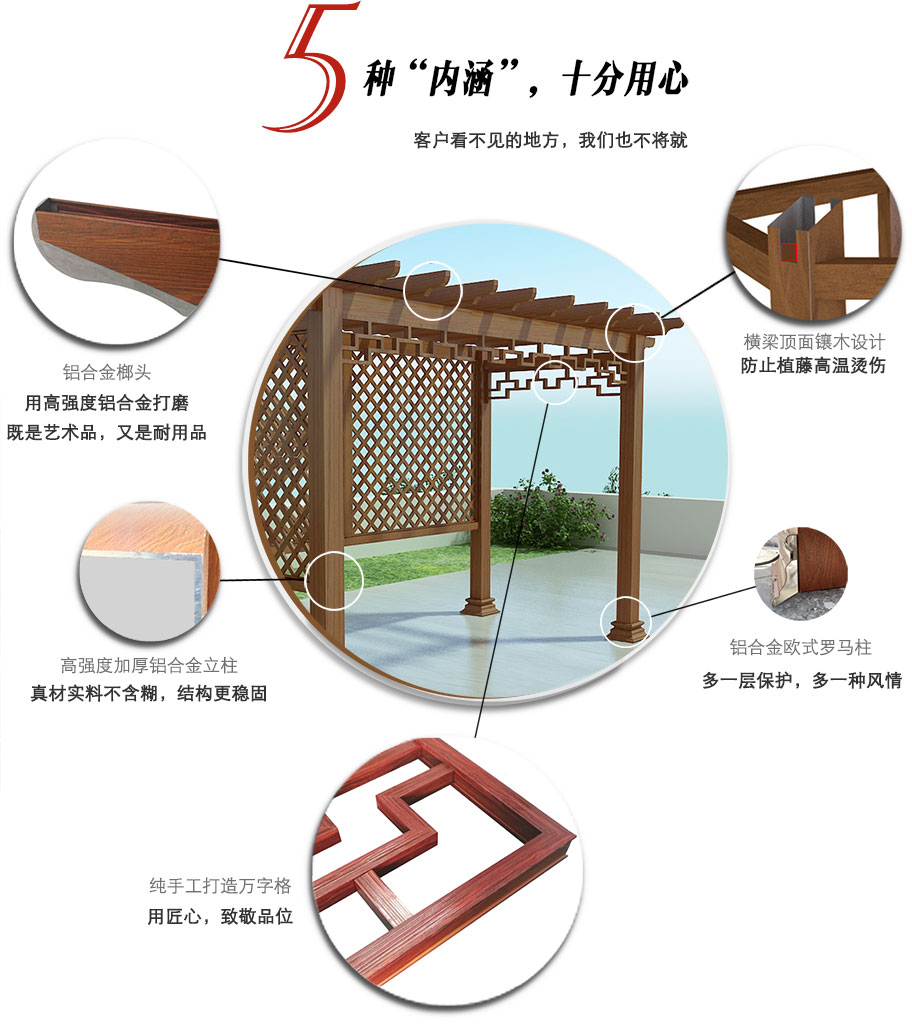 鋁合金結(jié)構(gòu)性能優(yōu)越,不開裂、不變形、不生銹、不褪色、防蟲蛀,無需刻意維護便可長久使用